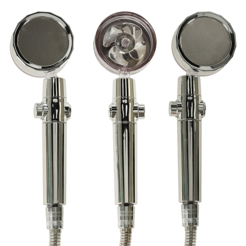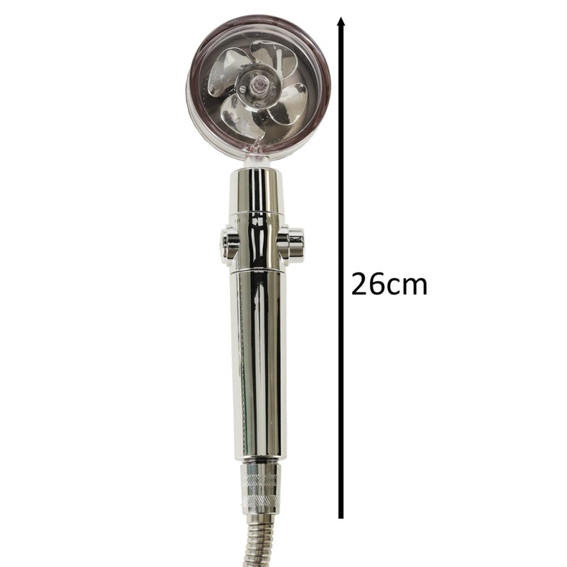 SŁUCHAWKA PRYSZNICOWA Z TURBINĄ I WĘŻEM SREBRNA