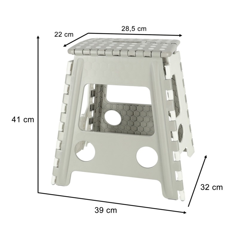 STOŁEK TABORET SKŁADANY ANTYPOŚLIZGOWY WYSOKI 39CM JASNOSZARY