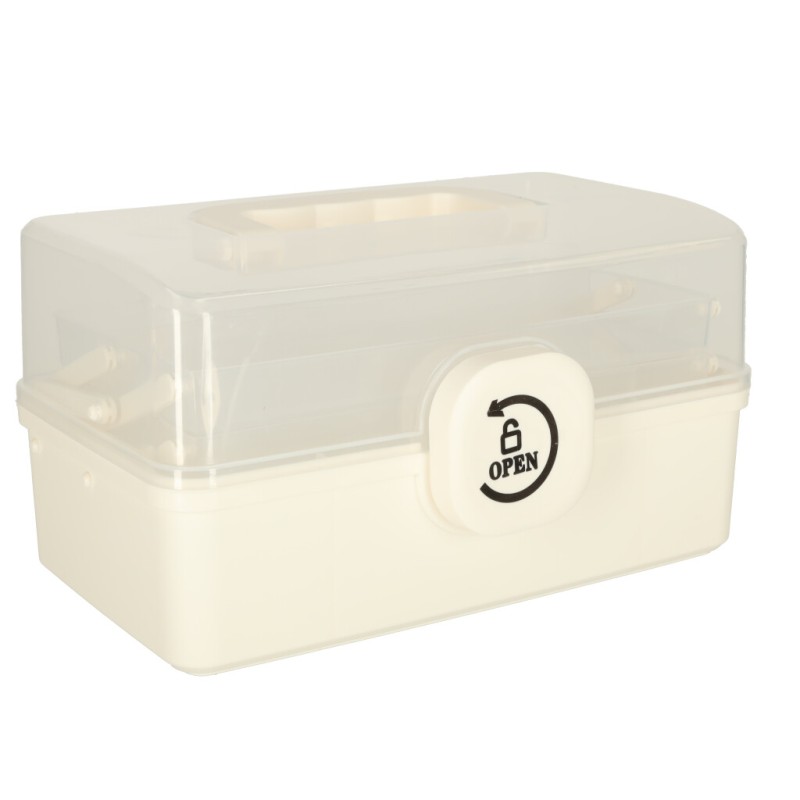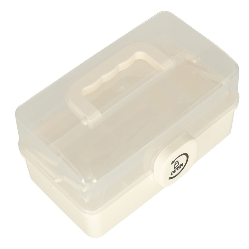 Przezroczyste wieczko ułatwia dostrzeżenie poszukiwanego medykamentu jeszcze bez otwierania domowej apteczki.