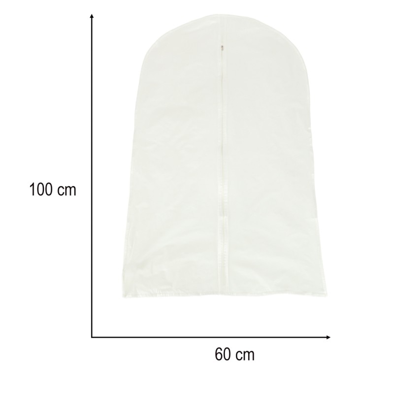 Pokrowiec o długości 100 cm posiada specjalny otwór na górze, który umożliwia łatwe zawieszenie go na wieszaku. Idealnie nadaje się do przechowywania odzieży wymagającej szczególnej troski, takich jak garnitury, sukienki, koszule czy płaszcze.