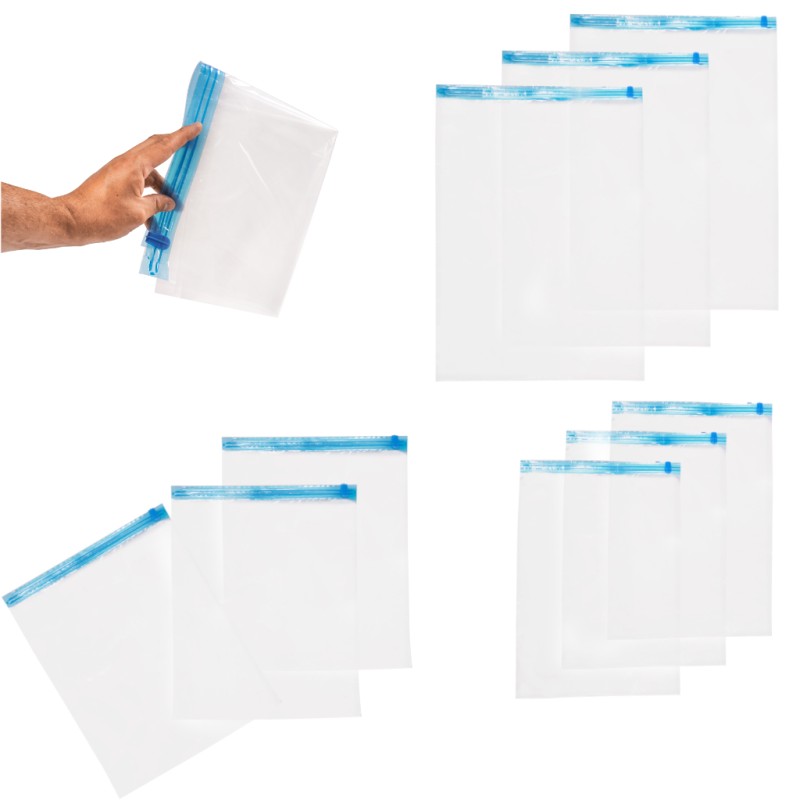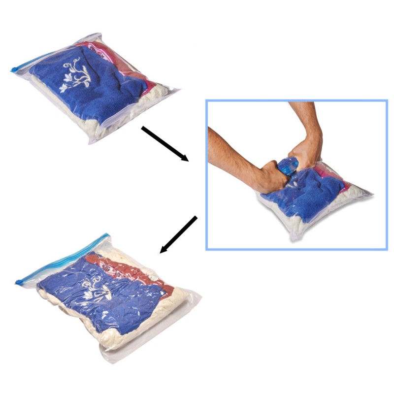 Dziewięć worków rolowanych w różnych rozmiarach (35x50 cm, 40x50 cm, 50x70 cm) pozwolą na schowanie wielu różnorodnych przedmiotów, chroniąc je przy tym od kurzu, wilgoci, brudu, przykrych zapachów, a także owadów – w szczególności moli. Więc po wyjęciu przedmiotów z worków nawet po długim czasie, będą one w tym samym stanie co przed zamknięciem worka!