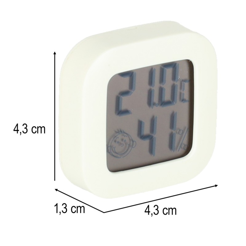 Poręczny higrometr pokojowy z termometrem - umożliwia dokładne nadzorowanie panujących warunków w pomieszczeniach. Zakres pomiaru temperatury: --50°C - 70°C. Zakres pomiaru wilgotności: 10% - 90%. Wymiary: 4,3 x 4,3 x 1,3 cm.