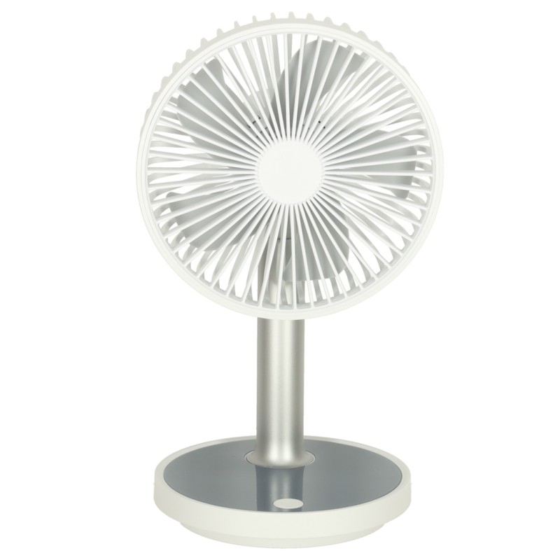 Cztery tryby pracy pozwalają na dopasowanie nawiewu do Twoich upodobań – możesz wybierać pomiędzy naturalnym, delikatnym, średnim i mocny nawiewem. Wbudowane lampki LED, które pooświetlają podstawkę, doskonale przydadzą się w nocy, zapewniając delikatne oświetlenie. Wysokość wiatraka można zmienić (z 30 do 38 cm), lepiej dopasowując go własnych potrzeb. Minimalistyczny wygląd i biały kolor nadają wiatrakowi ponadczasowego wyglądu. Postawiony na biurku nie tylko będzie zapewniał ochłodę, ale również będzie współgrał z całym wnętrzem. Dzięki niewielkim rozmiar można go postawić prawie wszędzie – na biurku, stoliku nocnym, parapecie i wszędzie tam gdzie chcesz.
