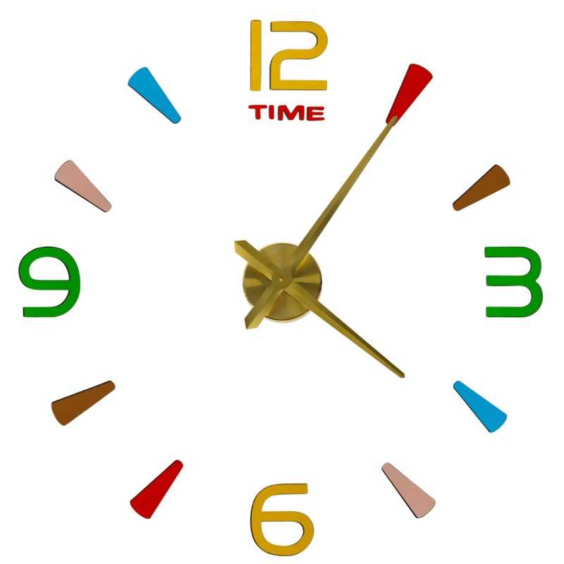 ZEGAR ŚCIENNY NAKLEJANY 4 CYFRY 80-90 CM ZŁOTE WSKAZÓWKI KOLOROWY
