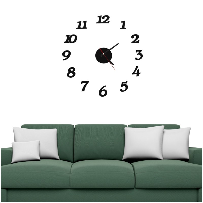 O wielkość zegara decydujesz TY od 70 cm do 130 cm średnicy. Łatwy montaż na ścianie "Do It Yourself" dzięki samoprzylepnym elementom. Zegar jest przeznaczony do montażu na gładkich scianach. Zegar jest zasilany baterią paluszkiem - brak w zestawie.