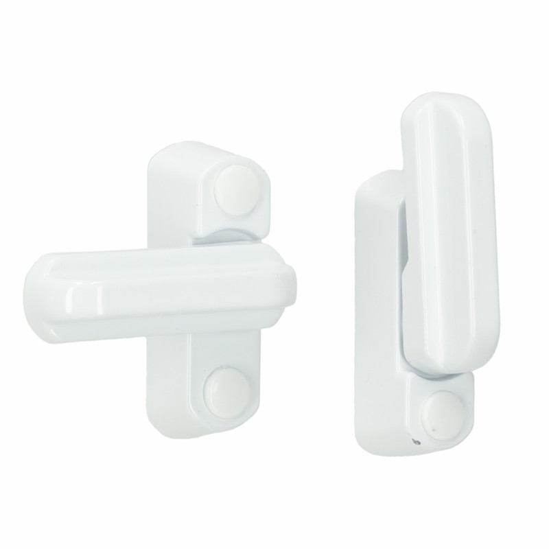 Zestaw dwóch solidnych, metalowych zabezpieczeń do OKIEN I DRZWI - skutecznie zablokuje klamkę, a tym samym uniemożliwi otwarcie drzwi lub okna.