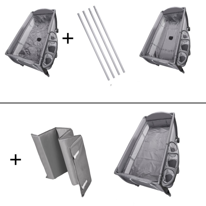 Wielofunkcyjne przenośne łóżeczko dla niemowląt i maluszków to komfortowe rozwiązanie stworzone z myślą o rodzicach. Niezależnie od tego, czy wybieracie się na sezonowy urlop czy jesteście ciągle w drodze – łóżko z pewnością sprosta Waszym oczekiwaniom. Stelaż ma ukryty mechanizm, który pozwala na proste złożenie i rozłożenie łóżka w każdych warunkach.