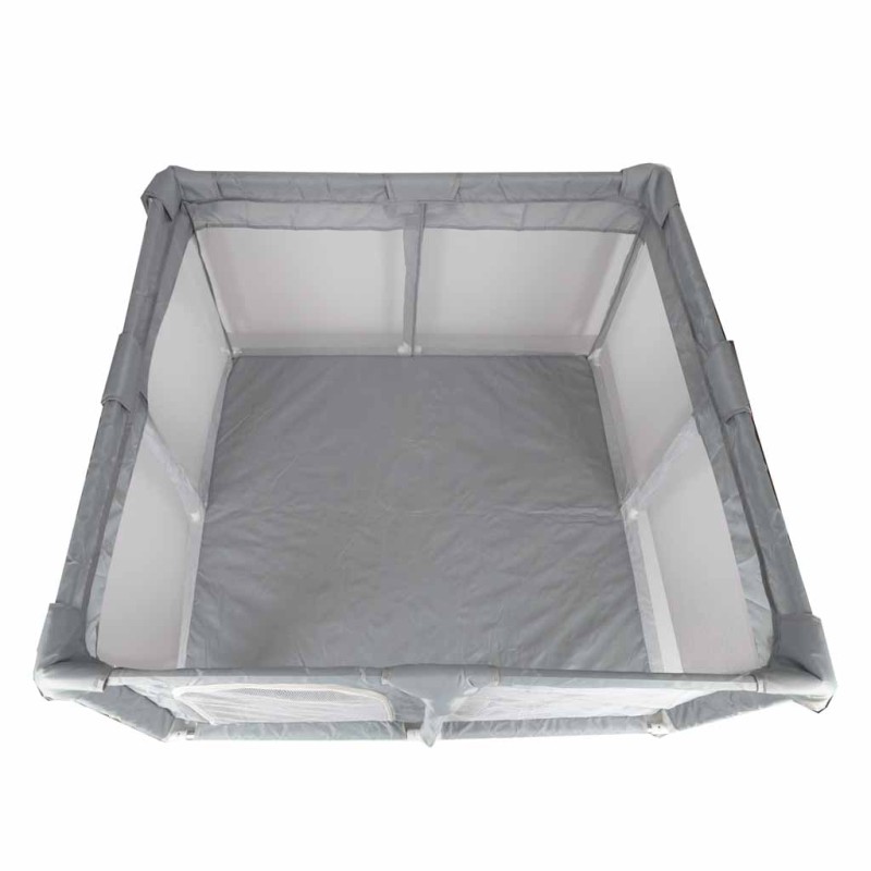 Ścianki z elementami siateczki pozwalają zobaczyć dziecko w kojcu, dzięki czemu można je mieć cały czas na oku. Łączniki z przyssawkami sprawiają, że kojec trzyma się stabilnie i się nie przesuwa podczas użytkowania.