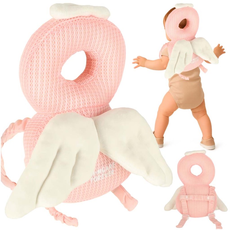 Poduszka wróżka ze skrzydełkami i koroną z miękkim zagłówkiem. Dla dzieci od 12 mies. życia - zapewni bezpieczeństwo podczas nauki chodzenia. Chroni tył głowy i plecy dziecka przed podłogą i meblami. Wymiary: 31 cm x 21 cm x 8 cm, kolor: różowy, beż