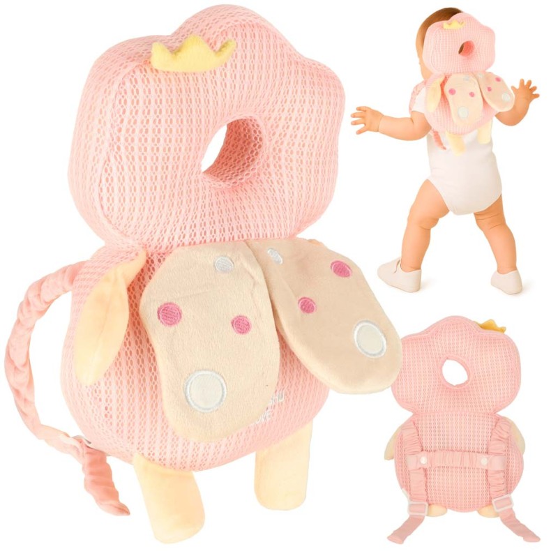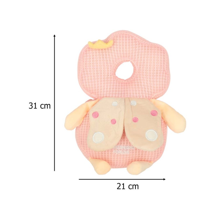 Poduszka wróżka ze skrzydełkami i koroną z miękkim zagłówkiem. Dla dzieci od 12 mies. życia - zapewni bezpieczeństwo podczas nauki chodzenia. Chroni tył głowy i plecy dziecka przed podłogą i meblami. Wymiary: 31 cm x 21 cm x 8 cm, kolor: różowy, beż