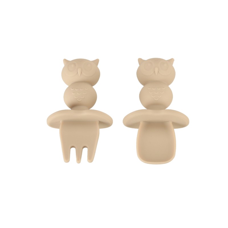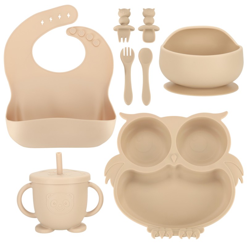 NACZYNIA SILIKONOWE DLA DZIECI SOWA ZESTAW 8 ELEMENTÓW BEŻOWY