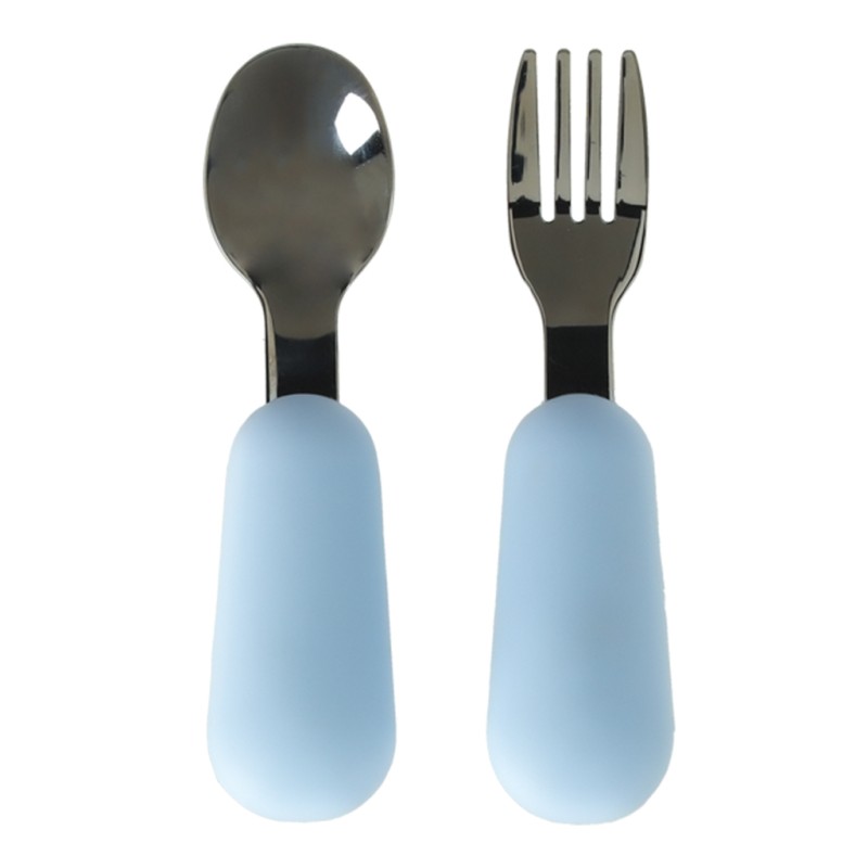 łyżeczka i widelec zostały zaprojektowane z myślą o małych dłoniach, dzięki czemu są lekkie i łatwe do chwycenia, co ułatwia dziecku korzystanie z nich w trakcie posiłku