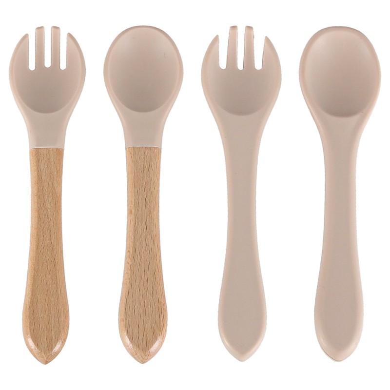 • Silikonowe sztućce (widelec i łyżeczka) oraz pierwsze sztućce z drewnianym uchwytem
