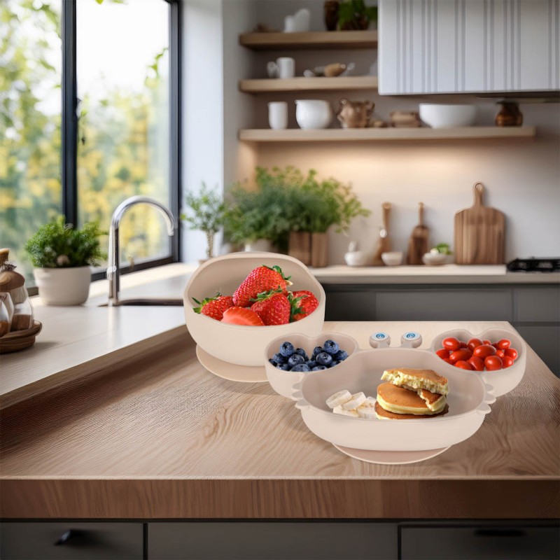 To nie są zwykłe akcesoria - to specjalne naczynia, które wspierają rozszerzanie diety malucha i ułatwiają samodzielne spożywanie posiłków. Każdy element wykonano z wysokiej jakości silikonu BPA free, co zapewnia dziecku bezpieczny kontakt z jedzeniem. Silikonowe naczynia charakteryzują się wytrzymałością i odpornością na uszkodzenia - w przeciwieństwie do naczyń plastikowych dla dzieci, nie pękają i służą znacznie dłużej.