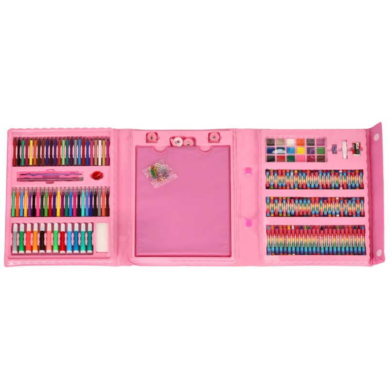 W naszym zestawie artystycznym znajdzie się coś dla każdego – pisaki do kolorowania, kredki do rysowania oraz farbki do malowania. Wszystko to w nasyconych barwach, które doskonale prezentują się na papierze. Całość zamknięta w wygodnej walizce, którą z łatwością można złożyć, zamknąć i zabrać ze sobą – do szkoły, przedszkola, na zajęcia plastyczne czy na wycieczkę, aby malować w plenerze!