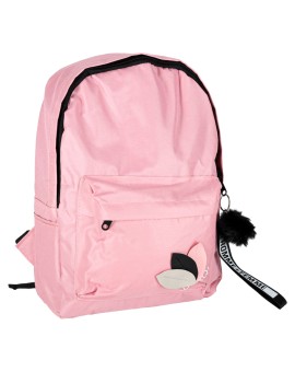 Różowy minimalistyczny plecak szkolny dla dzieci i młodzieży z breloczkiem. Ma wymiary 35 cm x 10,5 cm x 25 cm i jest wykonany z poliestrowej tkaniny Oxford. Odpowiedni dla dzieci i młodzieży chodzących do szkoły podstawowej.