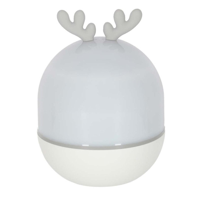 Obrotowa lampka nocna z rzutnikiem po zgaszeniu światła wywoła we wnętrzu efekt nocnego nieba czy podmorskich głębin. Pokrywa z rogami renifera ozdobi pokój dziecięcy, sypialnię lub salon. Po odsłonięciu pokrywy, można założyć jedną z sześciu klisz i podziwiać poruszające się na ścianie animacje świetlne.
