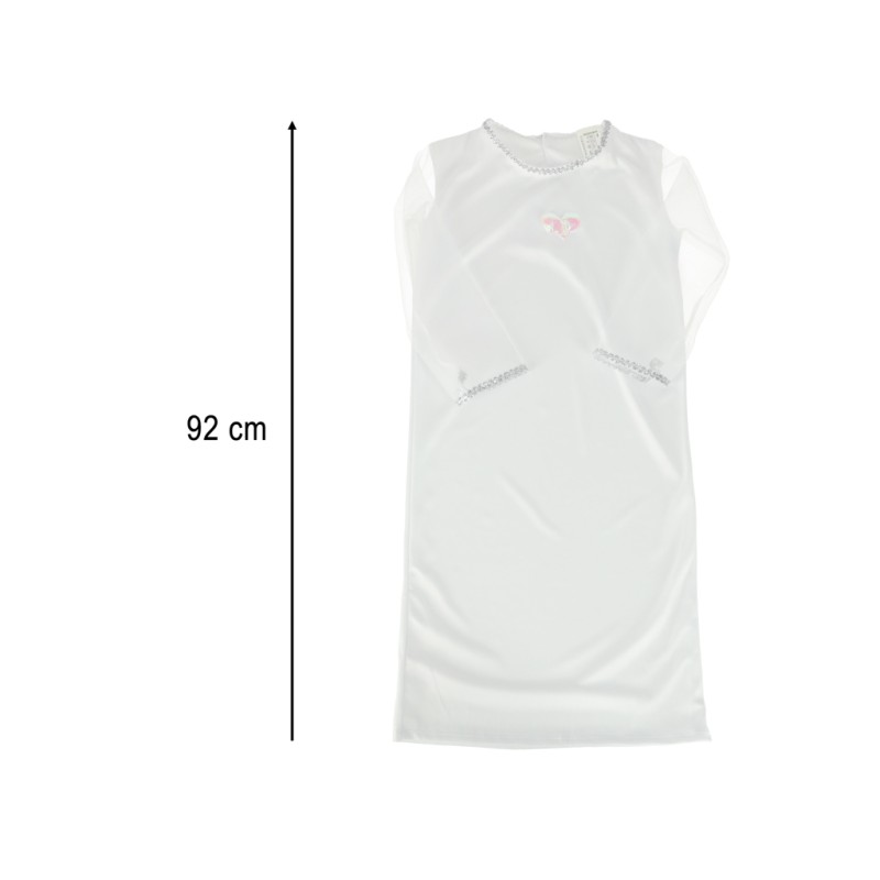 Zestaw zawiera długą, białą sukienkę z cekinami, srebrny pasek, opaskę z aureolą na głowę i anielskie skrzydła. Strój jest wykonany z poliestru i zapewnia swobodę ruchów podczas wystąpienia lub zabawy.