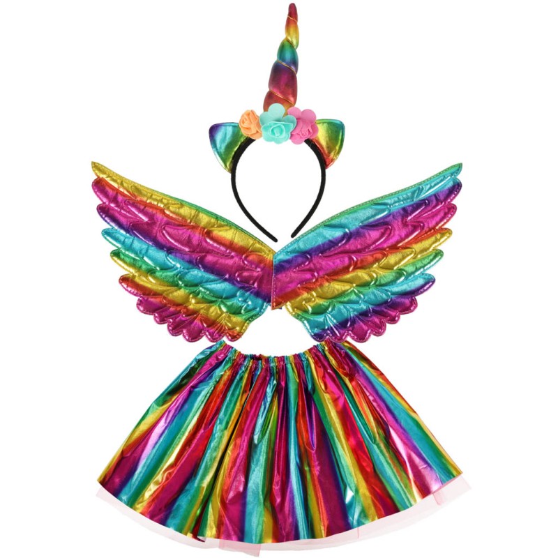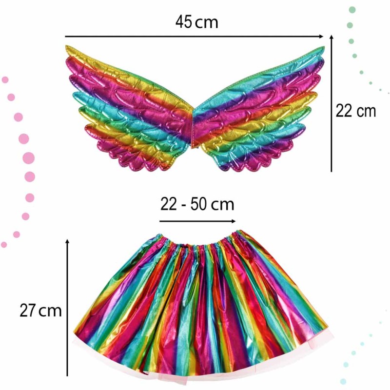 • Efekt od pierwszego spojrzenia - tęczowa spódniczka, skrzydła jednorożca i opaska z rogiem jednorożca tworzą spektakularny, bajkowy wygląd