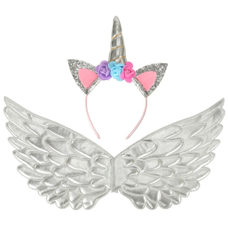 W zestawie zawiera spódniczkę, skrzydła i opaskę z rogiem jednorożca!