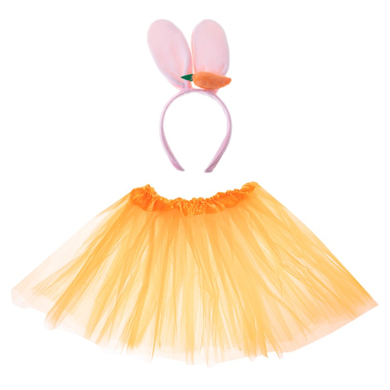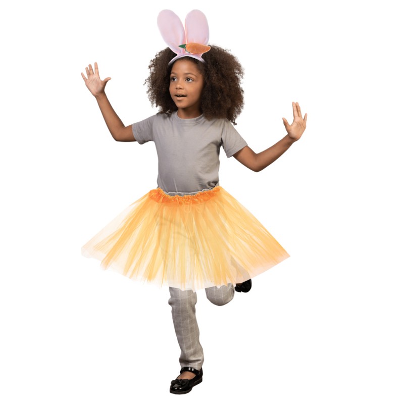 W zestawie znajdziesz opaskę z miękkimi uszkami i smakowitą marchewką, ale również pomarańczową tiulową spódniczkę – Twoje dziecko będzie mogło się przebrać za dobrze znane każdemu zwierzątko!