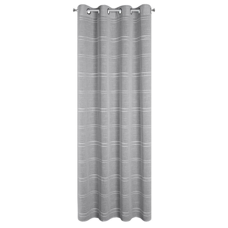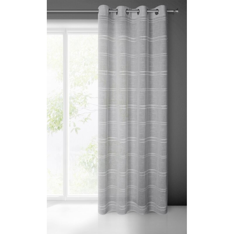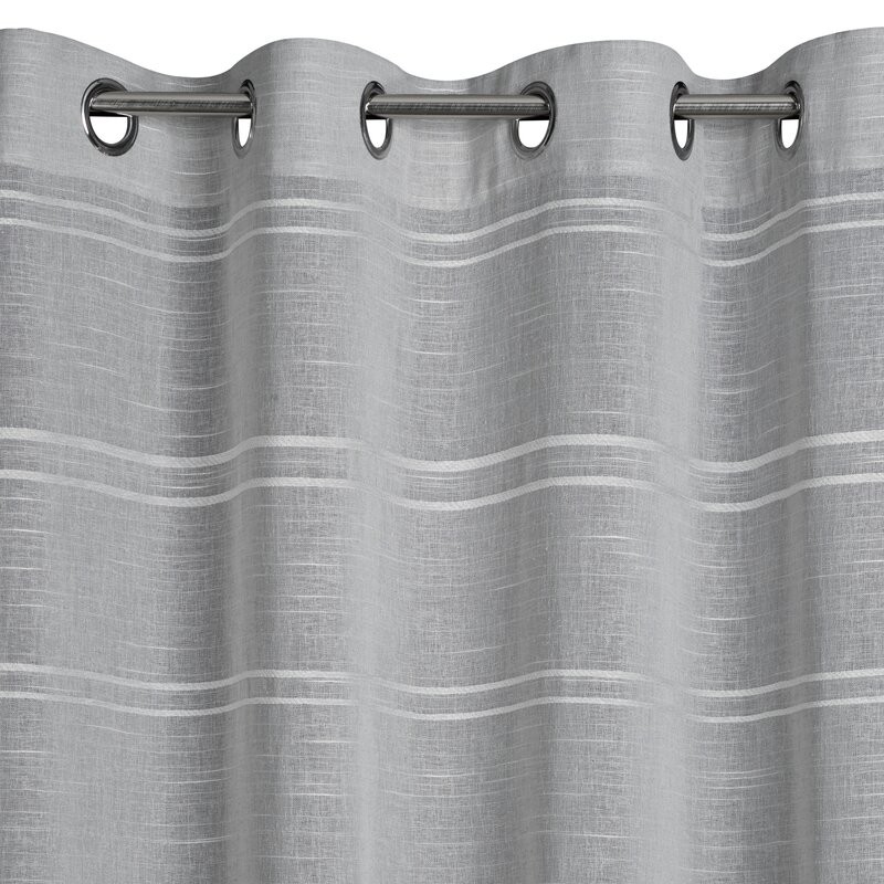 Firana gotowa zdobiona pasami, w stylu eko szerokość: 140 cm, długość: 250 cm, kolor: szary, Skład: 100% poliester