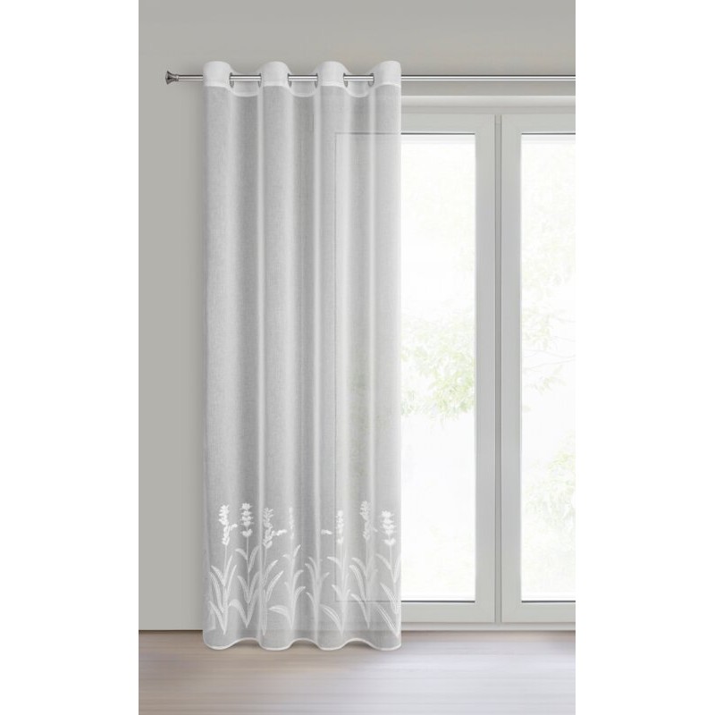 Firana gotowa zdobiona haftem szerokość: 140 cm, długość: 250 cm, kolor: biały, Gramatura: 72 GSM, Skład: 100% poliester