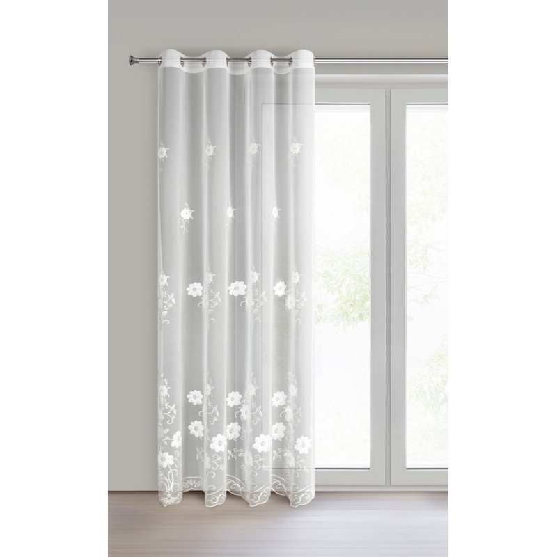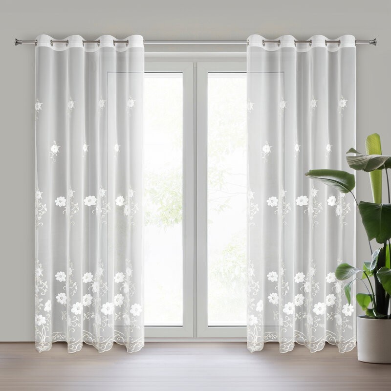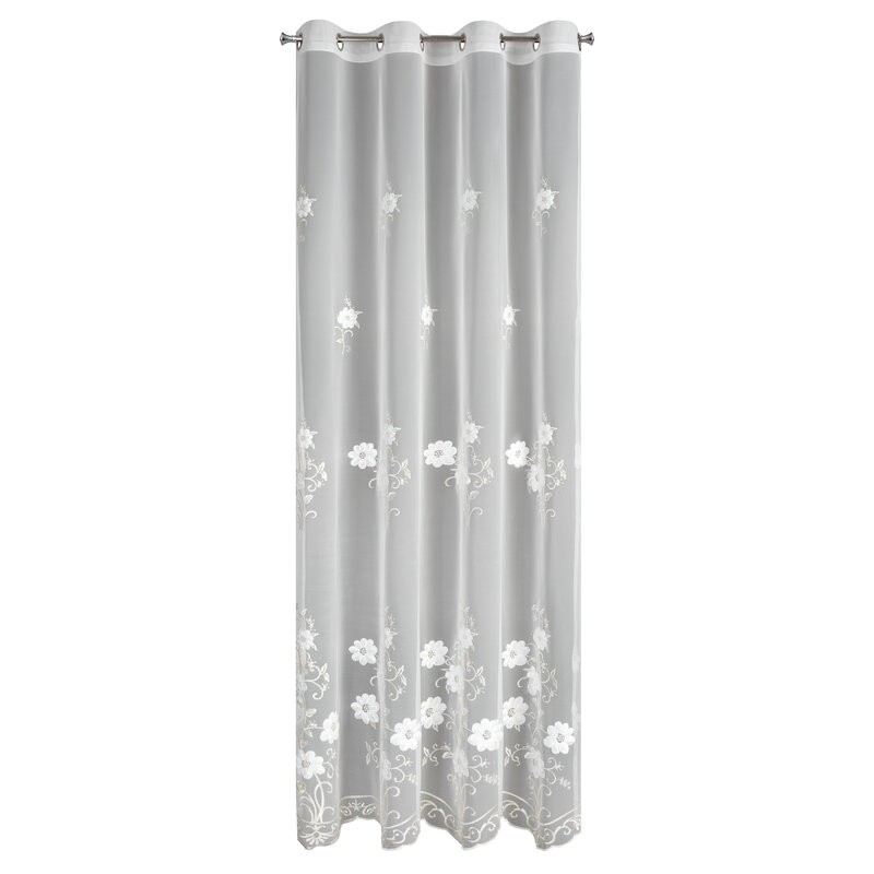 Firana gotowa z ozdobnym haftem szerokość: 130 cm, długość: 270 cm, kolor: biały, Gramatura: 90 GSM, Skład: 100% poliester