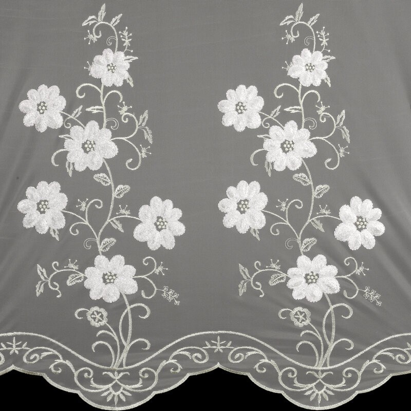 Firana gotowa zdobiona haftem szerokość: 140 cm, długość: 250 cm, kolor: biały, Gramatura: 80 GSM, Skład: 100% poliester