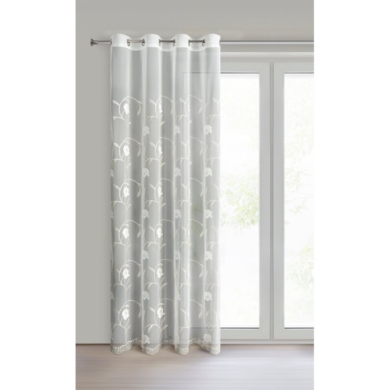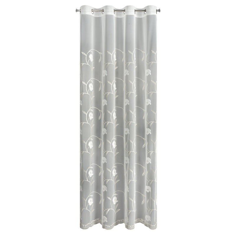 Firana gotowa zdobiona haftem szerokość: 140 cm, długość: 250 cm, kolor: biały, Gramatura: 72 GSM, Skład: 100% poliester