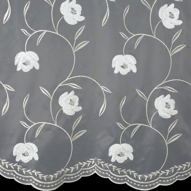 Firana gotowa zdobiona haftem szerokość: 140 cm, długość: 250 cm, kolor: biały, Gramatura: 70 GSM, Skład: 100% poliester