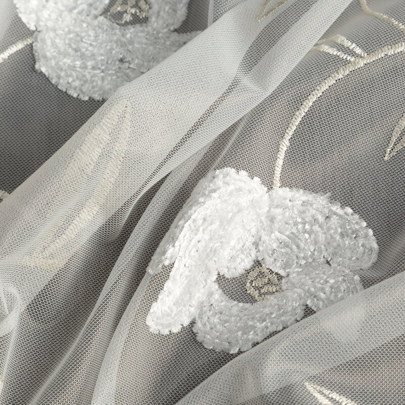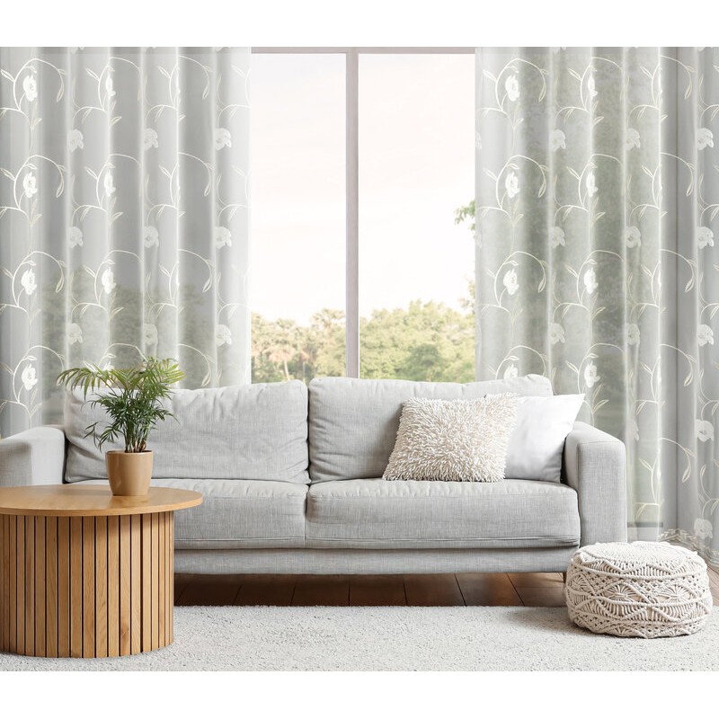 Wprowadź do swojego domu odrobinę romantycznej lekkości dzięki firanie z drobnej siateczki, ozdobionej haftowanym motywem delikatnych kwiatów. To wyjątkowa dekoracja, która tworzy przytulną, pełną spokoju atmosferę, subtelnie przepuszczając światło i rozjaśniając wnętrze.