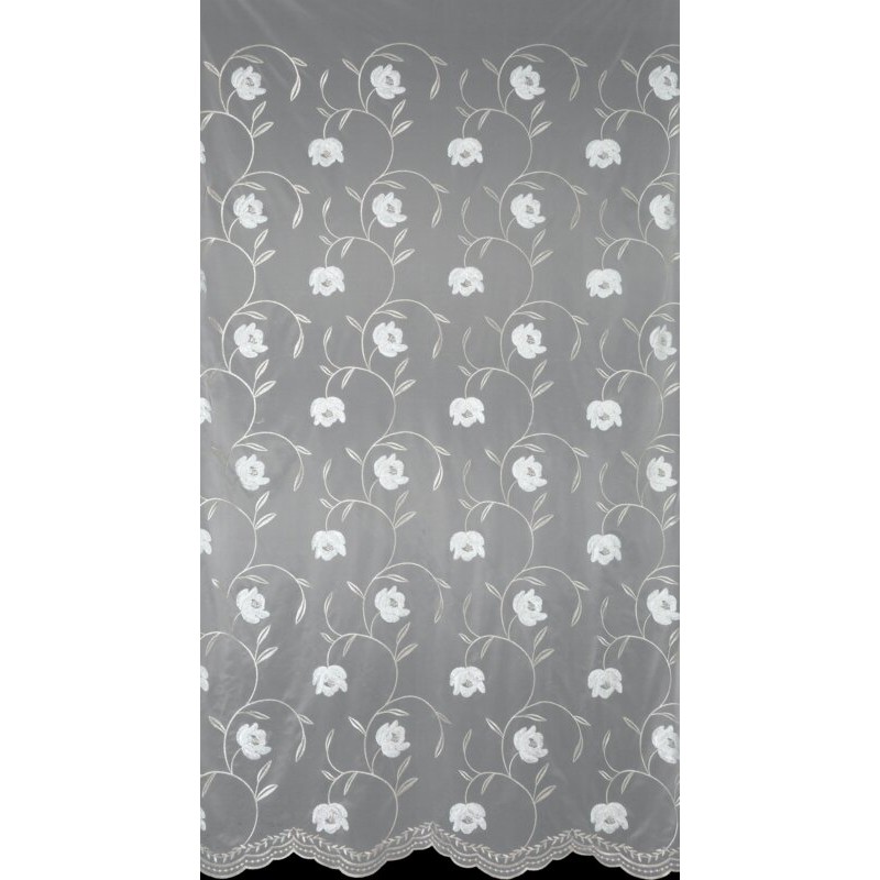 Firana gotowa NATALI z drobnej siateczki zdobiona haftowanymi kwiatami