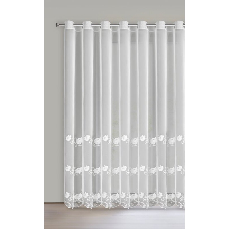 Firana gotowa z ozdobnym haftem szerokość: 130 cm, długość: 270 cm, kolor: biały, Gramatura: 90 GSM, Skład: 100% poliester