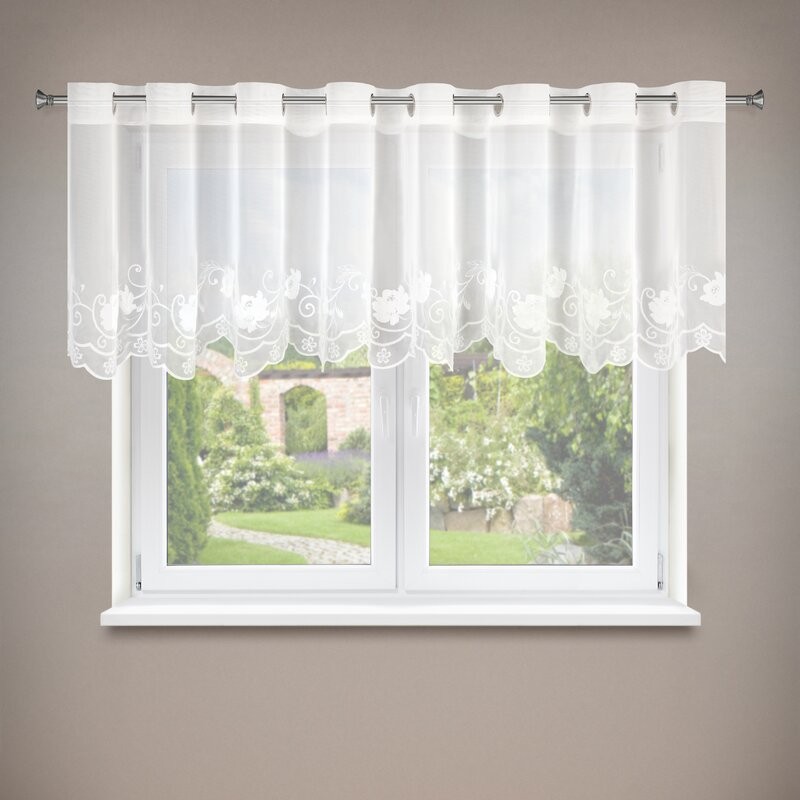 Firana gotowa zdobiona haftem szerokość: 350 cm, długość: 150 cm, kolor: biały, Skład: 100% poliester