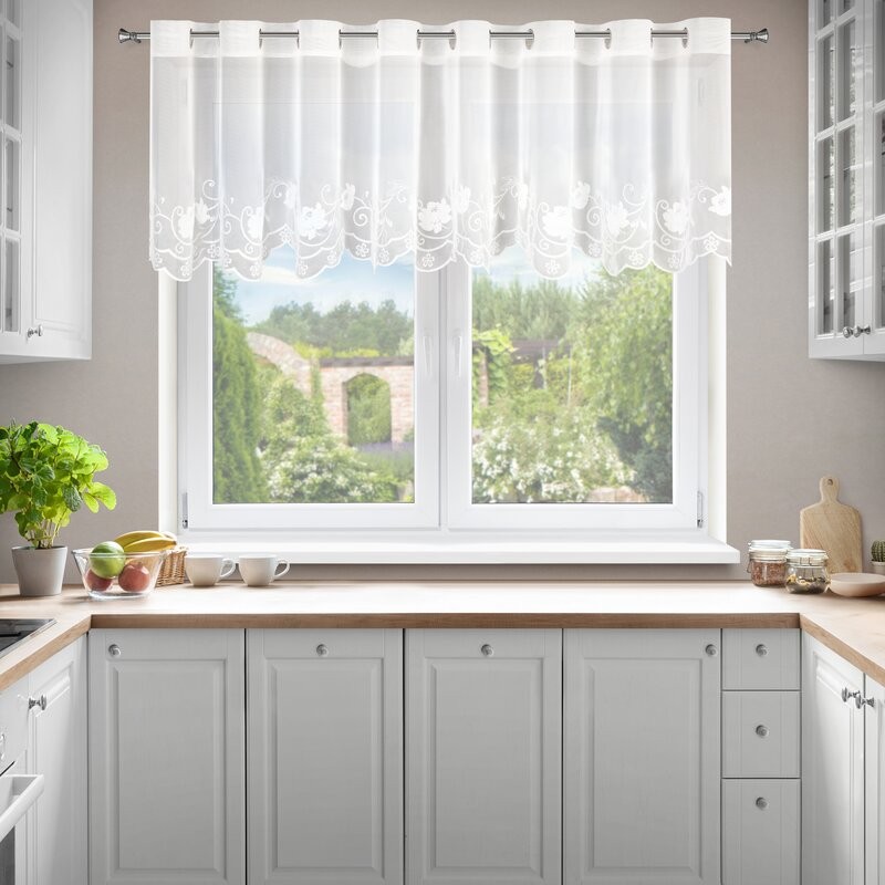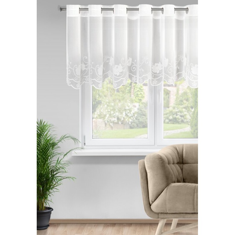 Firana gotowa zdobiona aplikacją szerokość: 140 cm, długość: 270 cm, kolor: biały, Skład: 100% poliester