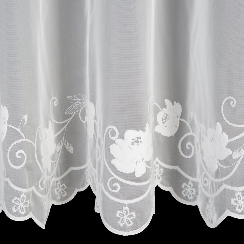 Firana gotowa NATALI z drobnej siateczki zdobiona haftowanymi kwiatami