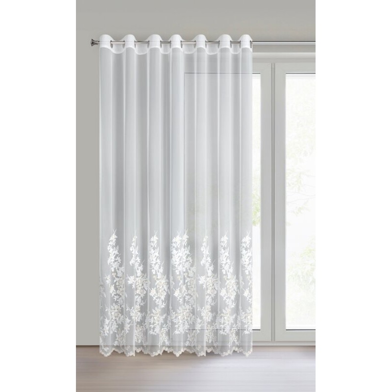 Firana gotowa NATALI z drobnej siateczki zdobiona haftowanymi kwiatami