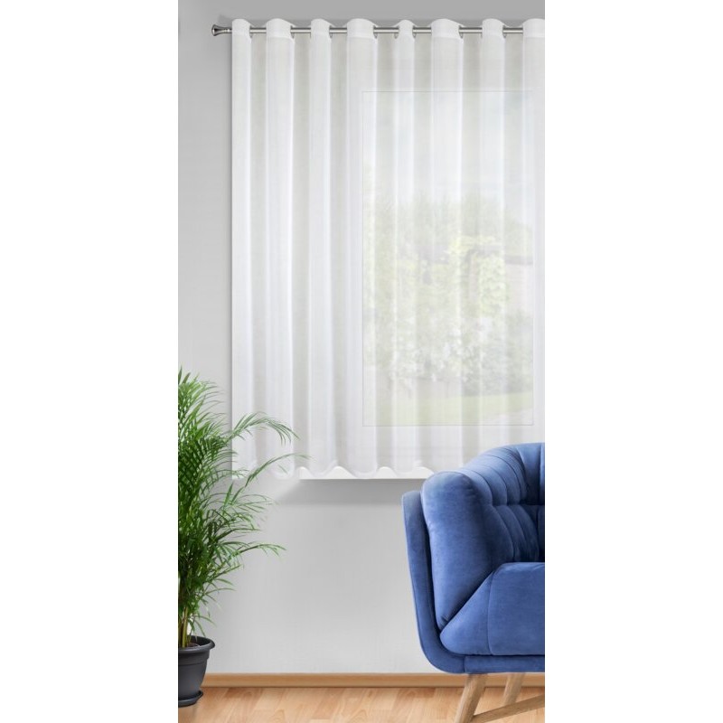 Delikatna firana w pięknym kolorze uszyta z tkaniny o strukturze drobnego deszczyku doskonale przepuszcza światło. Łatwa w prasowaniu i praniu dekoracja. szerokość: 140 cm, długość: 270 cm, kolor: biały, Gramatura: 50 GSM, Skład: 100% poliester