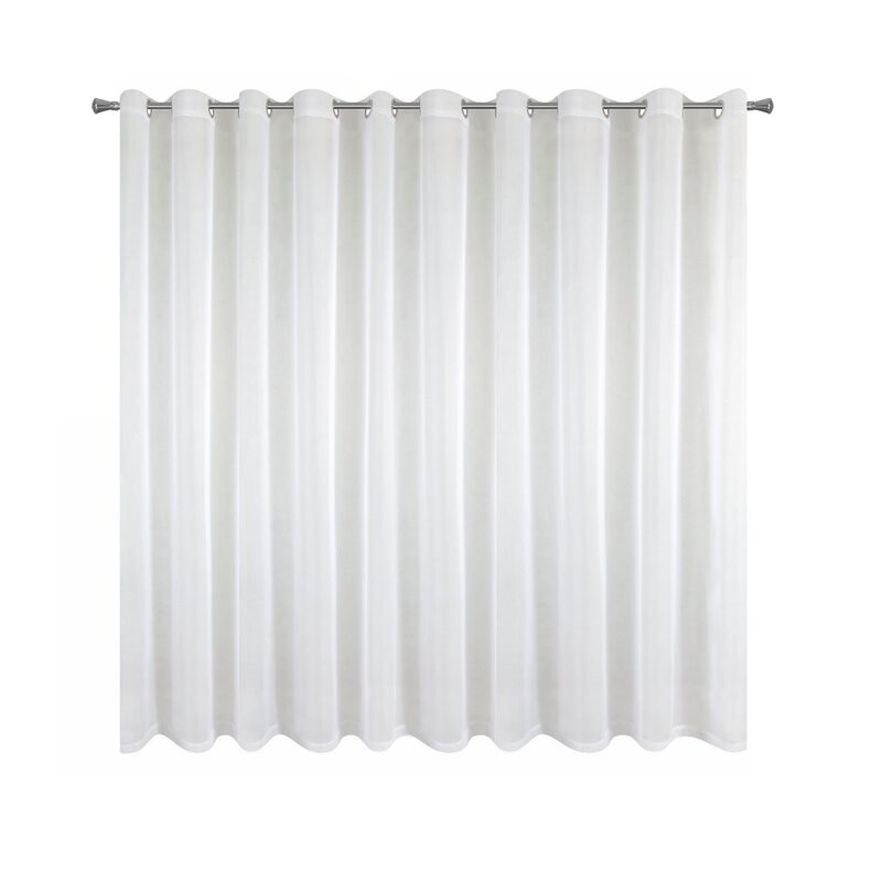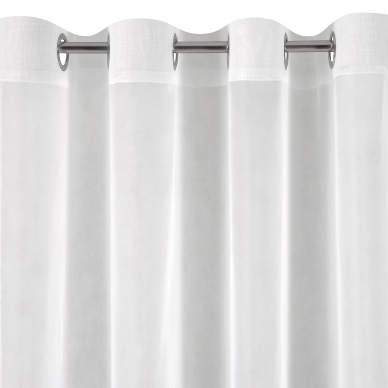 Półprzejrzysta zasłona, która sprawdzi się również w roli firany. Wpuszcza do wnętrza naturalne światło a jednocześnie zapewnia poczucie prywatności. szerokość: 350 cm, długość: 250 cm, kolor: biały, Gramatura: 35 GSM, Skład: 100% poliester