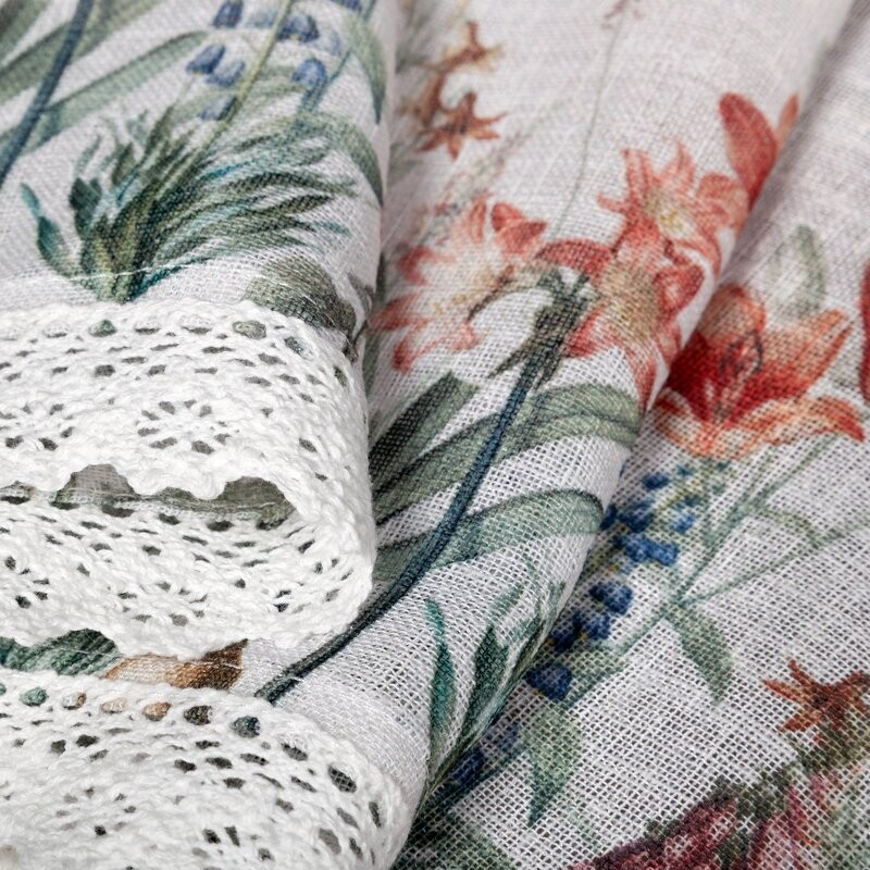 Zazdrostka ARI z etaminy zdobiona nadrukiem magnolii i koronką 30x150 cm