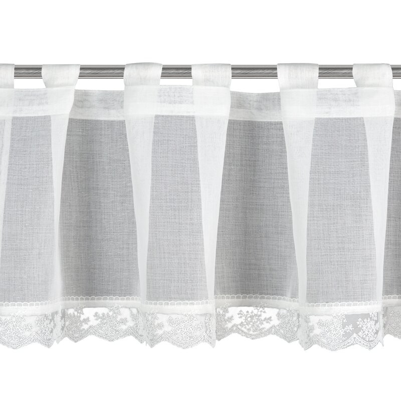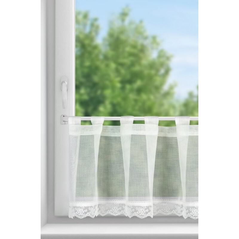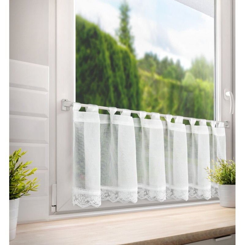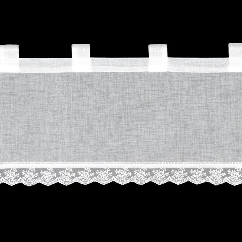 Zazdrostka gotowa zdobiona obszywką szerokość: 150 cm, długość: 40 cm, kolor: biały, Gramatura: 68 GSM, Skład: 100% poliester