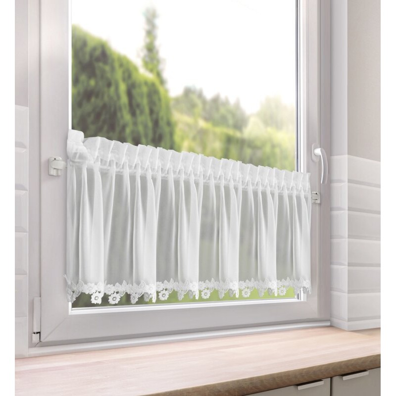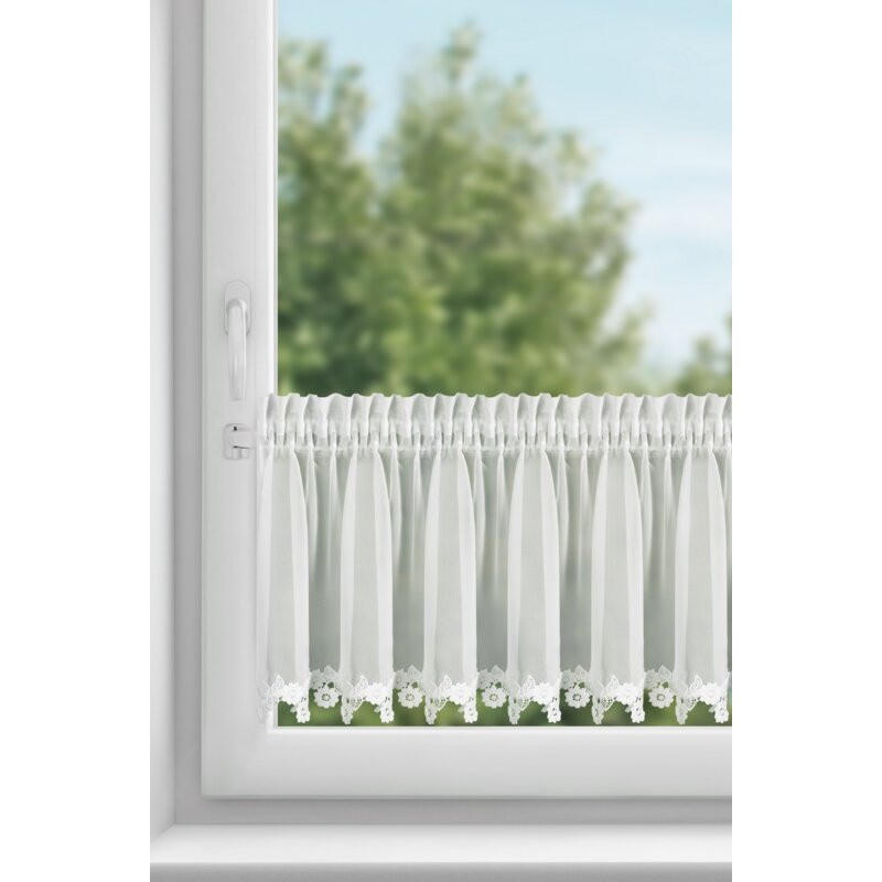 Firana gotowa z ozdobną obszywką szerokość: 30 cm, długość: 150 cm, kolor: biały, Skład: 100% poliester