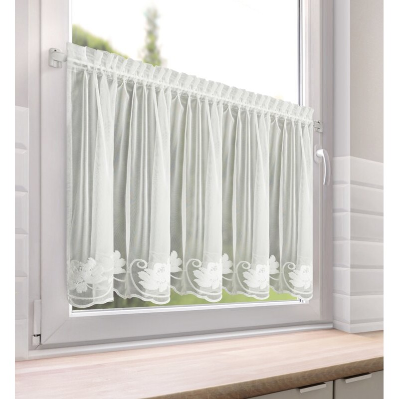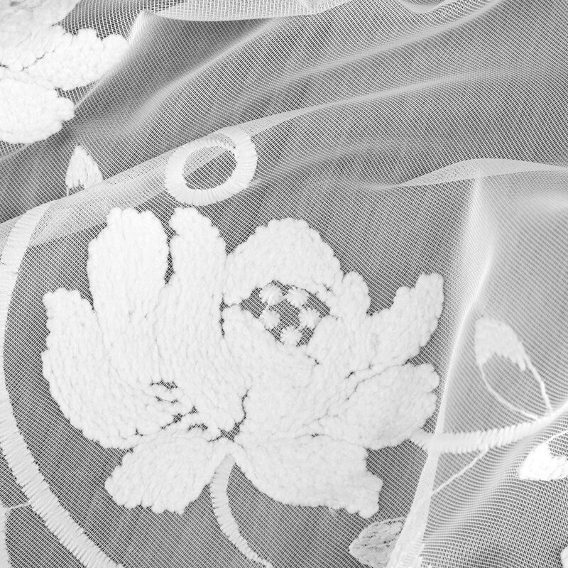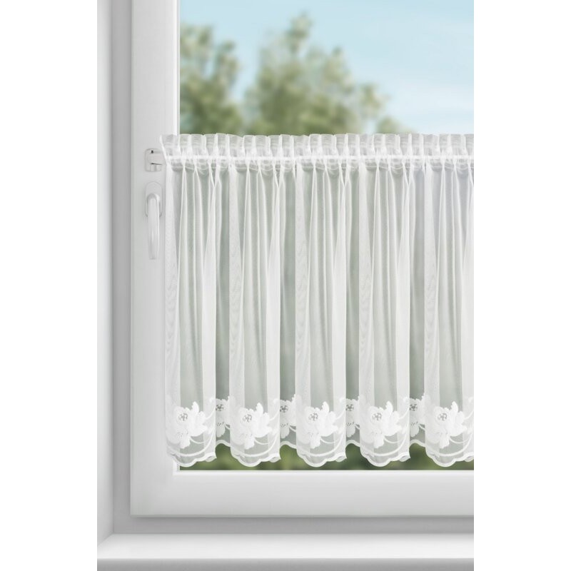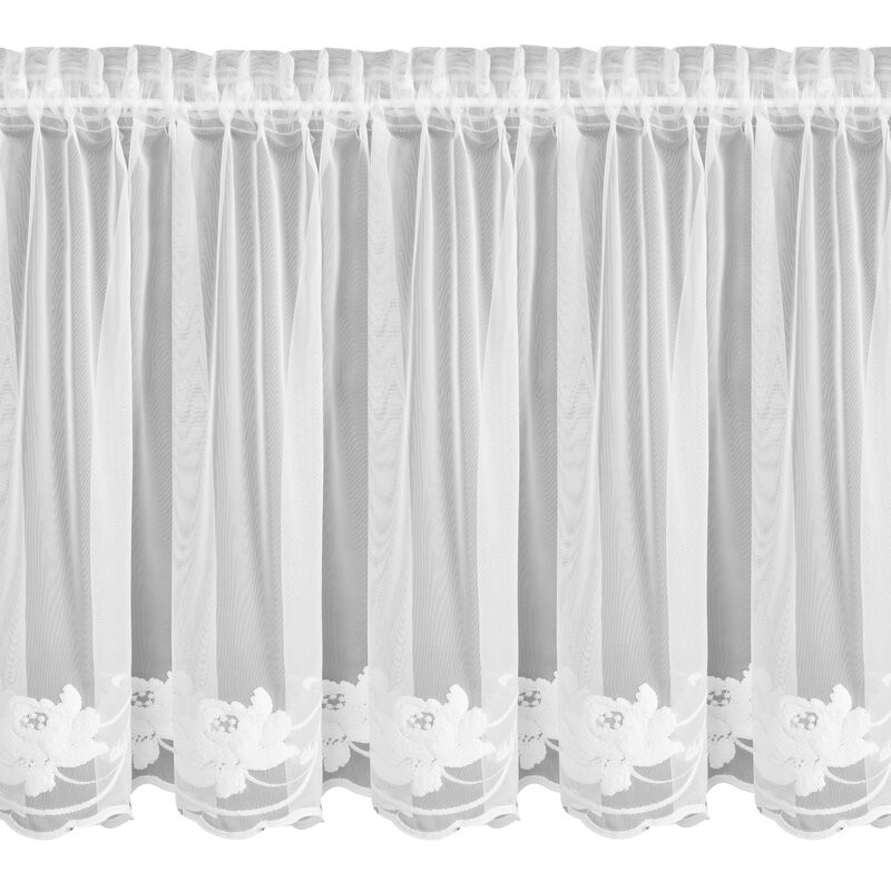 Zazdrostka z ażurowym kwiatowym wzorem szerokość: 150 cm, długość: 30 cm, kolor: biały, Gramatura: 230 GSM, Skład: 60% bawełna, 40% poliester