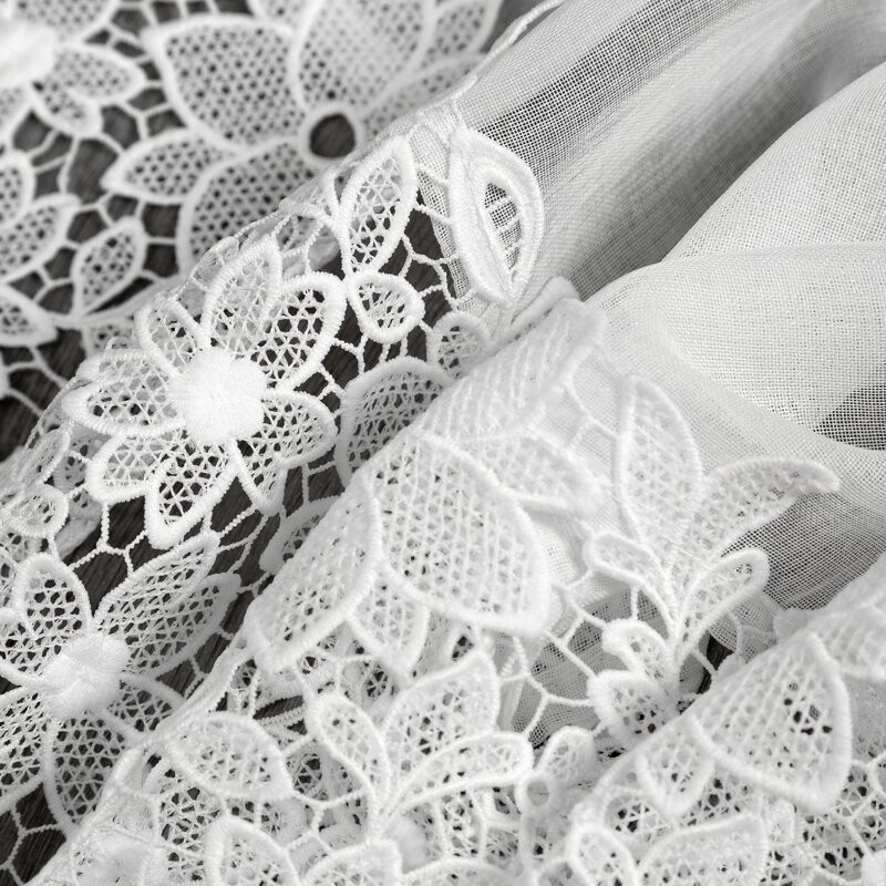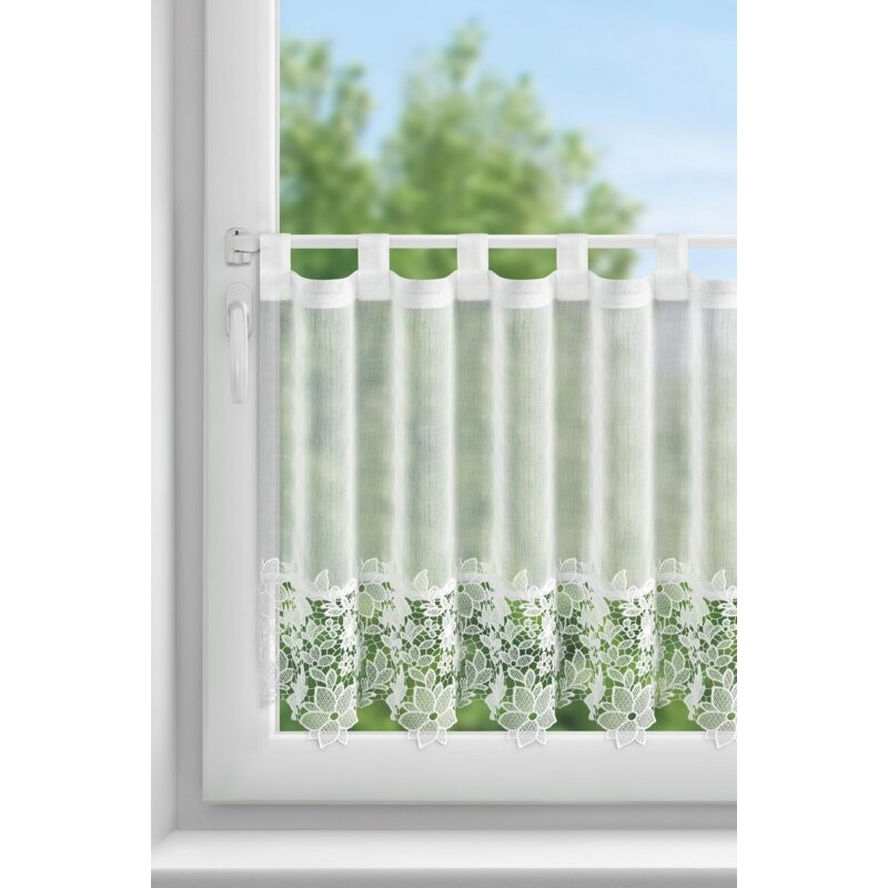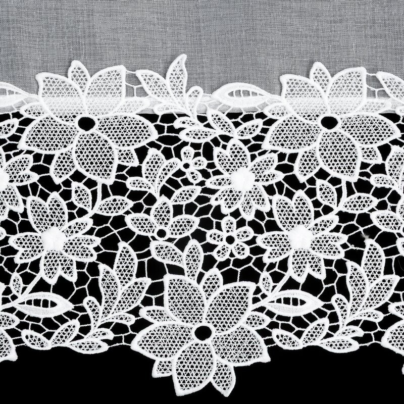 Zazdrostka z ażurowym kwiatowym wzorem szerokość: 150 cm, długość: 60 cm, kolor: biały, Gramatura: 230 GSM, Skład: 60% bawełna, 40% poliester