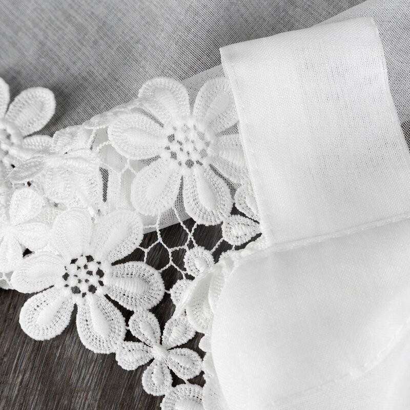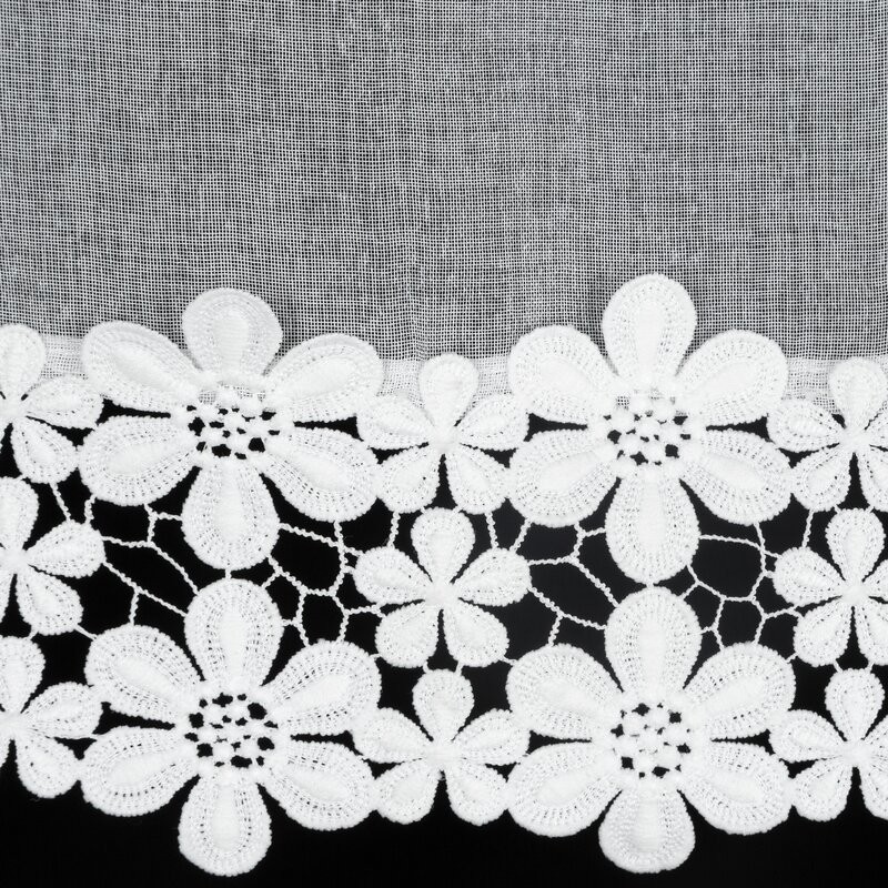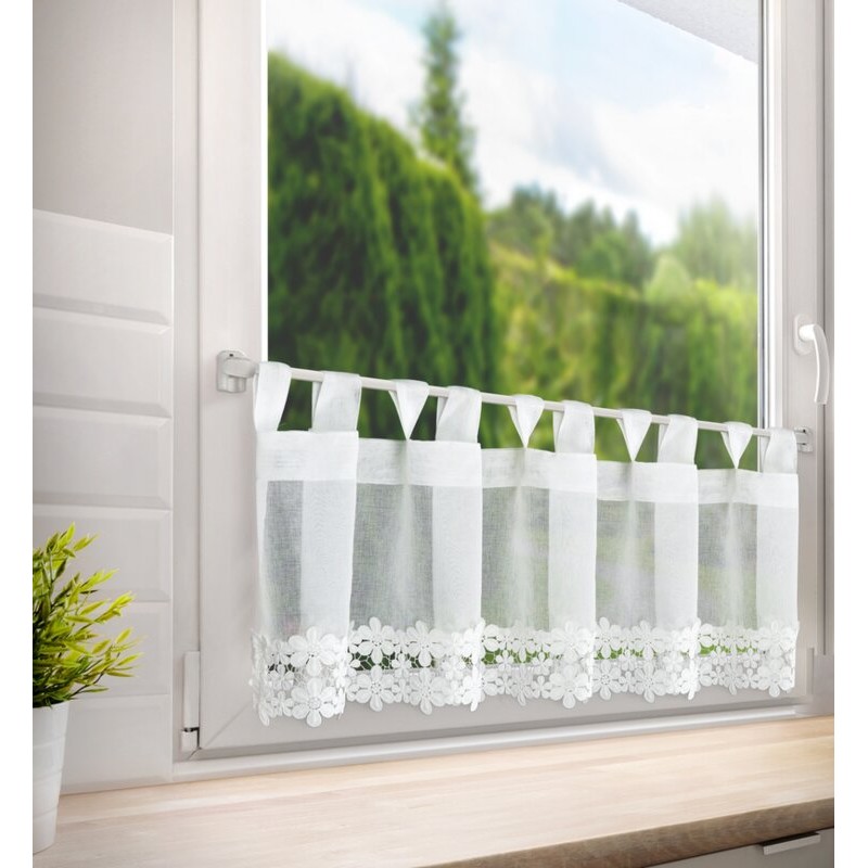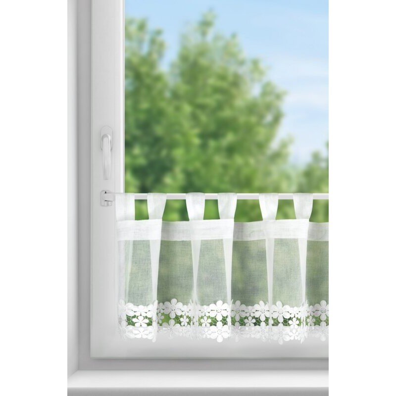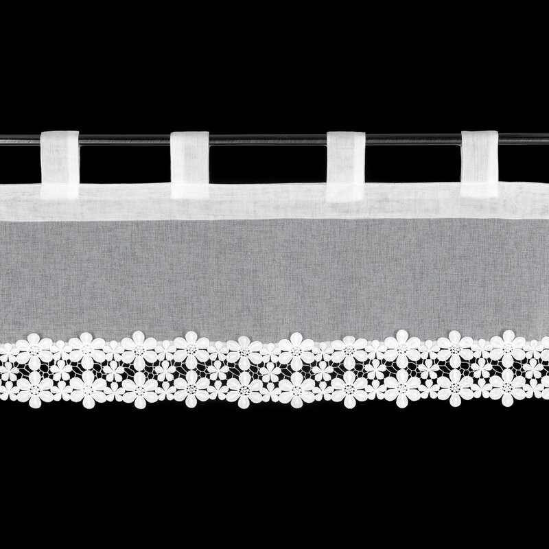 Zazdrostka z ażurowym kwiatowym wzorem szerokość: 150 cm, długość: 30 cm, kolor: biały, Gramatura: 230 GSM, Skład: 60% bawełna, 40% poliester