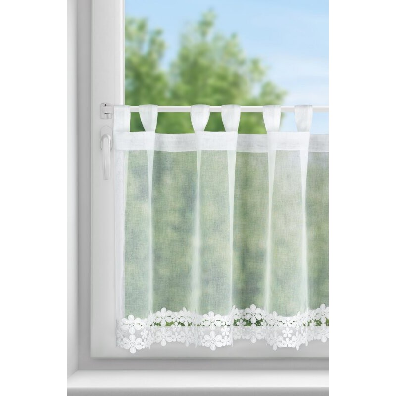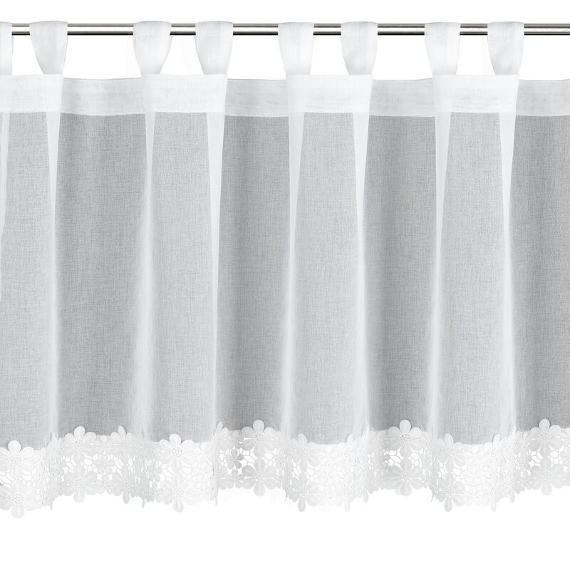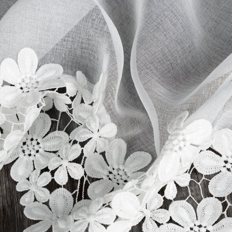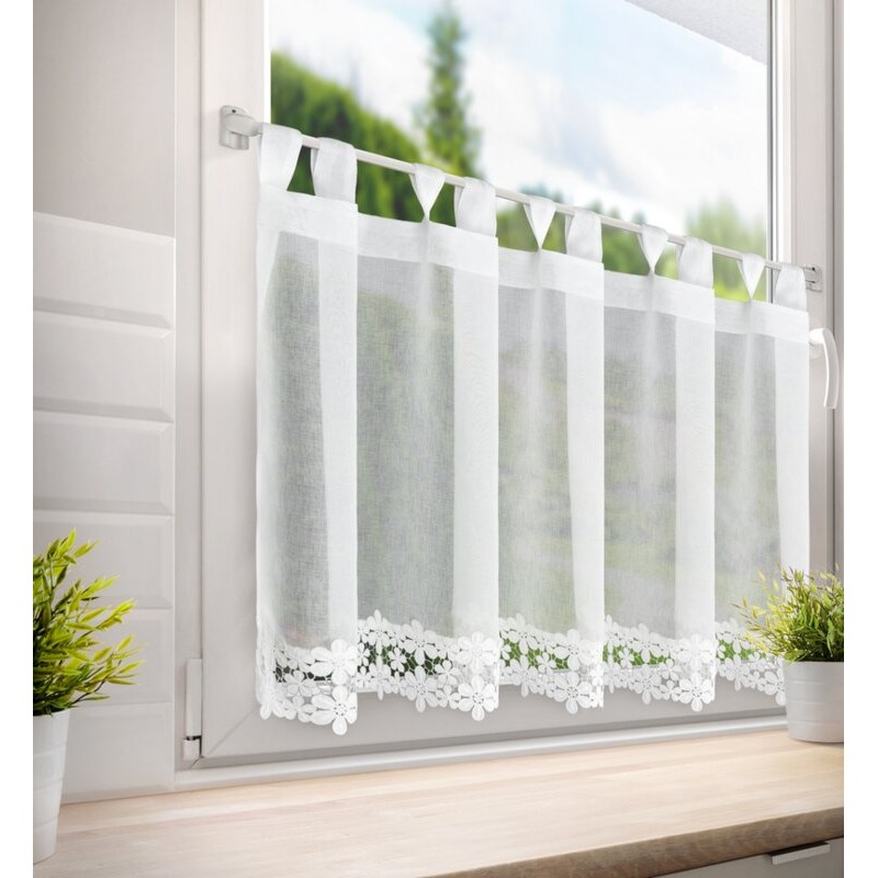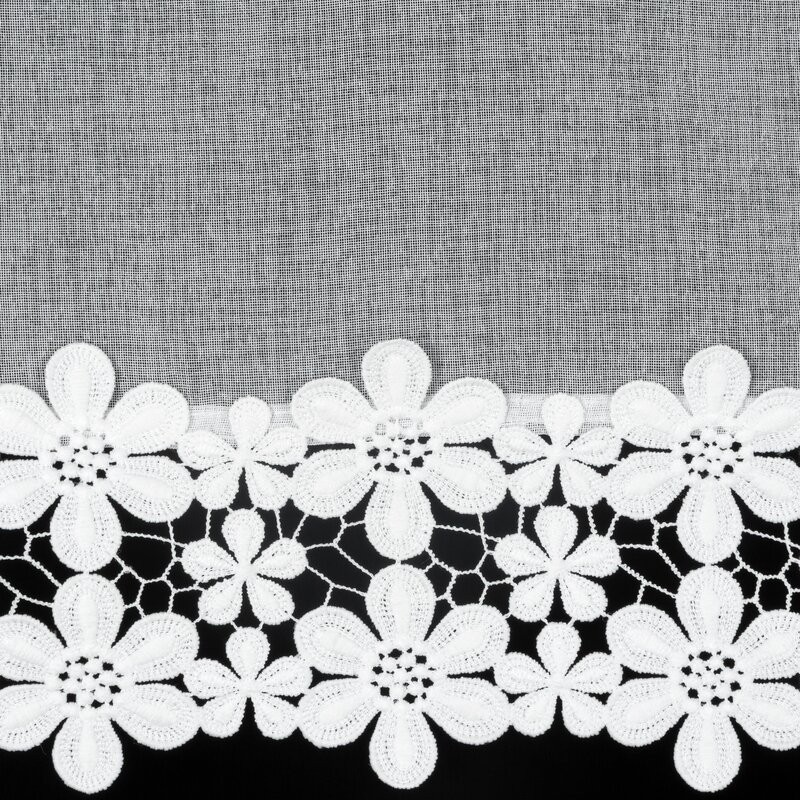 Zazdrostka z ażurowym kwiatowym wzorem szerokość: 150 cm, długość: 30 cm, kolor: biały, Gramatura: 230 GSM, Skład: 60% bawełna, 40% poliester