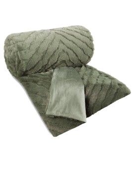 Miękki, futrzany koc z efektem 3d szerokość: 150 cm, długość: 200 cm, kolor: oliwkowy, Gramatura: 360+180 GSM, Skład: 100% poliester