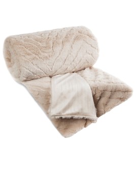 Miękki, futrzany koc z efektem 3d szerokość: 150 cm, długość: 200 cm, kolor: beżowy, Gramatura: 360+180 GSM, Skład: 100% poliester