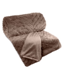 Miękki, futrzany koc z efektem 3d szerokość: 150 cm, długość: 200 cm, kolor: ciemnobeżowy, Gramatura: 360+180 GSM, Skład: 100% poliester